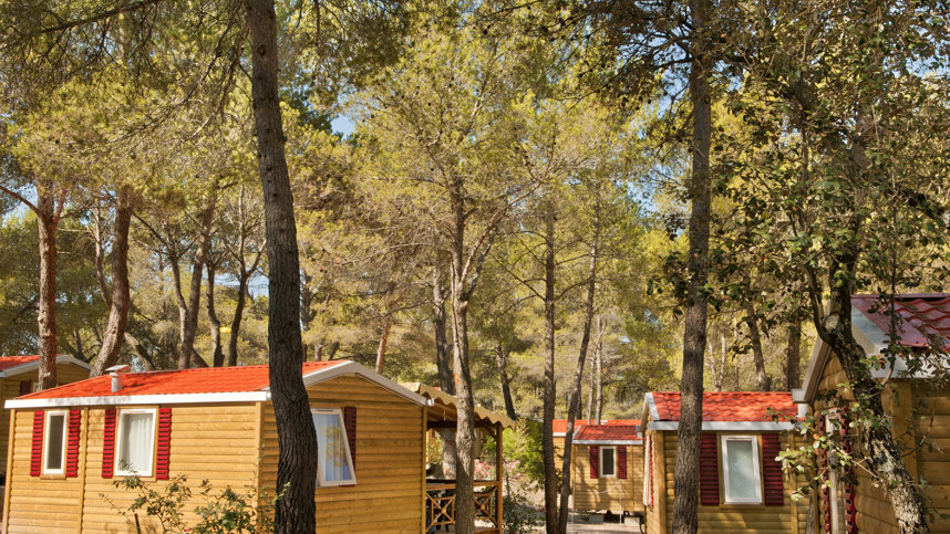 Les Pinèdes is set in a pine forest on a hill above the town of Pertuis. It is in the Parc Naturel du Luberon, in the heart of Provence, an area well known for its distinctive countryside, culture, picturesque villages and historic towns. There are 65 shaded touring pitches of varying sizes, all with electricity, and 166 mobile homes and chalets, and eight furnished tents to rent. The site has two heated pools and water slides, as well as a paddling pool and an outdoor play area with the distinctive FranceLoc wooden ‘crazy house’ structure, which children adore. Some chalets and pitches enjoy stunning views across the Luberon.
