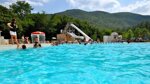 Four sanitary blocks (1 large new one) have washbasins in cabins and accessible facilities. Washing machine. Supermarket (15/6-30/8). Restaurant, pizzeria and takeaway (all 1/5-3/9). Swimming pools with water slide (1/6-30/9). Fitness area. Play area. Minigolf. Activity and entertainment programme. Private river beach. Fishing. WiFi over site (charged). Fully equipped mobile homes to rent.