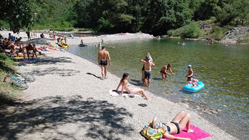 Les Plans is an attractive family site on the edge of the magnificent Cévennes National Park. The site is located on the banks of the River Gardon, between Saint Jean-du-Gard and Anduze. There is a private beach beside the river and a good range of other amenities, including two swimming pools (one with water slides). The 300 pitches, 245 for touring, are large (around 100 sq.m) and well shaded. All touring pitches have electricity (3/6/10A). The restaurant is located in an 18th-century farm building and incorporates a pizzeria with a wood-fired oven.