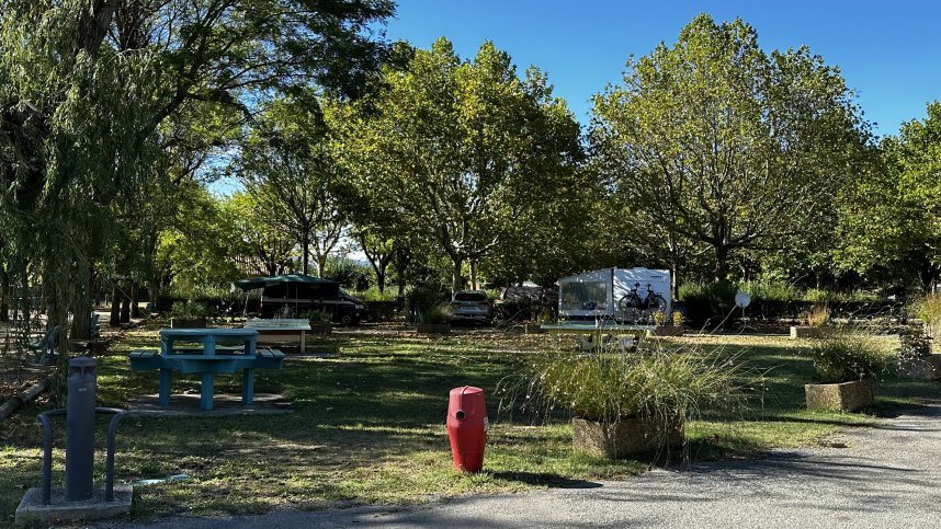 Camping Les Prés Hauts is ideally located between the Alps and Provence in a green setting with all the quality facilities for your comfort. Access to the site is very good for all sizes of vehicles and check-in was very efficient, with a little English spoken in reception. Pitches are a good size, level and divided by low hedges, all have access to E.H.U. and fresh water and shade. On site facilities include a pool, bar and snack bar. As well a base to enjoy the area this site is an ideal stop-over when travelling south or returning back to the U.K.