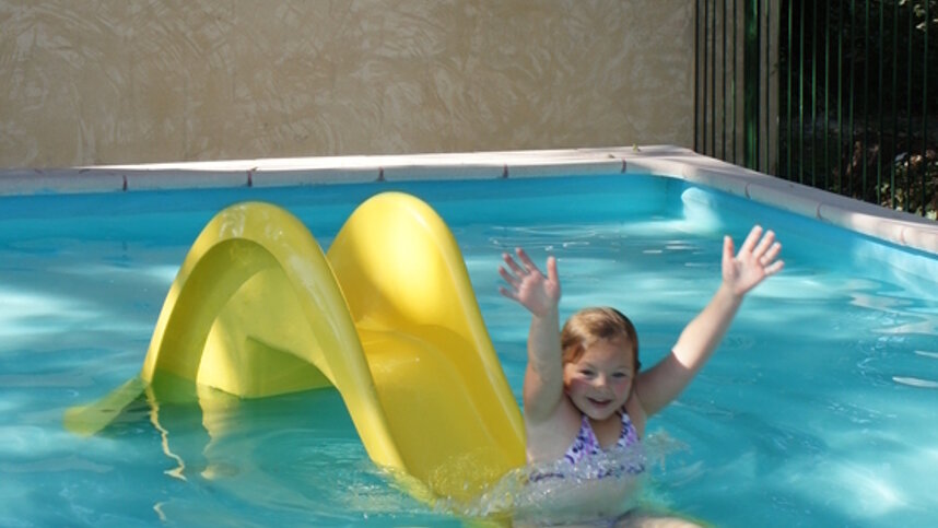 A single, large building provides adequate accessible facilities including some washbasins in cabins. Family shower room. Chemical toilet point. Dish washing area. Laundry. It is quite a walk from some pitches. Small shop. Bread to order. Bar. Restaurant. Takeaway (July/Aug). Freezer for ice packs. Games/TV room. Table tennis. Outdoor heated swimming and paddling pools (May-Sept). Massage. Play areas. Boules. Playing field. Only gas barbecues are permitted. Wi-Fi throughout (charged July/Aug, but free at snack bar). Dogs allowed. Defibrillator.