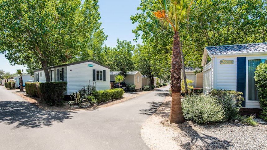Part of an extensive complex of campsites close to the pleasant village of Port Barcarès on the Mediterranean coast, and midway between Narbonne and the Spanish border, les Tamaris is largely dedicated to the 400 chalets and mobile homes (around 100 for hire), grouped in three concentric circles and in serried ranks. Just twenty touring pitches with electrical connections (10A Europlug) are available here but they are squeezed between the mobiles. The toilet blocks for the touring area do not open until July/August. The sandy beach is a 20 minute walk, as are the first of the shops, bars and restaurants of Le Barcarès. Regular markets are held here throughout the year and there is a busy port and marina. The Village des Pêcheurs pays tribute to the region’s fishing heritage.