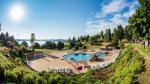 Three modern toilet blocks with accessible facilities, Motorhome services. Small shop (1/5-30/9). Restaurant/takeaway in hotel. Swimming pool and spa (1/6-30/9). Lively entertainment programme in peak season including children’s club but no discos. Play area. Communal barbecue area. Gas and electric barbecues only. Free WiFi over site.