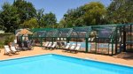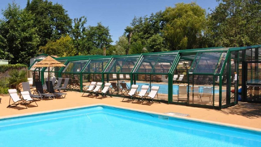 One toilet block with accessible facilities. Laundry room (rather dated). Shop, bar with TV, pizza/snacks (July/Aug). Outdoor (15/6-15/9) and indoor swimming pools (1/4-2/11). Tennis. Boules. Multisports court. Small play areas. WiFi over site (charged). Fishing. Max. 1 dog per unit.