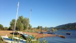 Les Vailhés is a popular municipal site with a wonderful situation on the shores of the Lac du Salagou which is a haven for watersports. Many pitches have views across the lake and the red volcanic rocks are most unusual. Of the 245 pitches, 55 are occupied by seasonal caravans and 190 are for touring, all with electricity (16A); on ground sloping towards the lakeside beach. Most are hedged and there is plenty of shade from a variety of trees. The site is fenced off from the lake but the gates are open during the day.