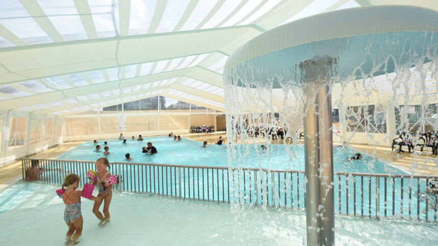 Two toilet blocks are equipped with showers and baby facilities. Washing machines and dryers near the pool require coins from the grocery store. Bar, a grocery store with bread (May to September) Take away (July and August). Indoor heated swimming pool with four water slides. Multisports ground, 18-hole crazy-golf course, mini-tennis, table tennis, pétanque grounds, games room, free outdoor fitness, children's playground. Inflatable castles and children's club (July to August). Bike rental. Fishing. WiFi throughout the campsite.