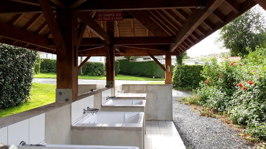 A building with up-to-date facilities includes washbasins in cubicles, preset hot showers (on payment – tokens from reception), laundry with washing machine and dryer (key from reception). Excellent accessible unit with three separate rooms, and dishwashing and laundry sinks set at low level also. A covered area adjacent to this building houses the bar/café. WIFI.