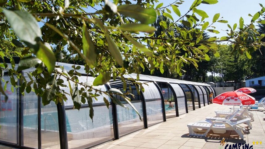 Heated sanitary block includes showers, some with washbasins. Baby bath. Accessible Facilities. Laundry room. Motorhome services. Small shop. Bar, restaurant and takeaway (July/Aug). Covered, heated swimming pool (April-Oct) and wellness cabin (charged). Playground. Children’s club (July/Aug). Mini farm. Sports field. Fishing. WiFi throughout.
