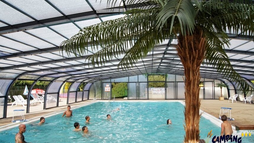 This family run site is situated in the countryside some miles inland from the busy coastal area around Guérande. There are 127 level, grass pitches with 32 for touring units. These vary in size and shape and most have 10A electricity. The remainder are occupied by mobile homes, chalets teepees and roulotes for rent, along with privately owned units. Both the site and the area are heavily wooded providing plenty of shade. There is a pleasant indoor heated pool and a small wellness cabin, while across the road is a large fishing lake.