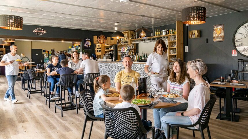 Accessible sanitary facilities, Shop. Bar/restaurant. Takeaway. Outdoor swimming pool and paddling pool with jacuzzi and water slides. Covered heated pool, paddling pool and jacuzzi. Aqua gym. Multisports pitch. Bicycle hire. Play area. Activity and entertainment programme. Mobile homes for rent. WiFi throughout (charged). Max. one dog.
