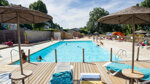 The campsite has a pleasant restaurant and bar offering various local dishes and quick takeaway food. The restaurant has a terrace partially covered during the summer and is a great area to enjoy summer evenings. You will also find a communal BBQ area to cook for yourself. The campsite offers wine tastings and a weekly market with local producers in July and August. Once a week, they also have a popular Guinguette evening where you can enjoy a traditional local meal, all while listening to live music. Opposite the bar and restaurant, you will find the heated outdoor swimming pool. In high season, an entertainment team also organises fun activities for kids to enjoy.