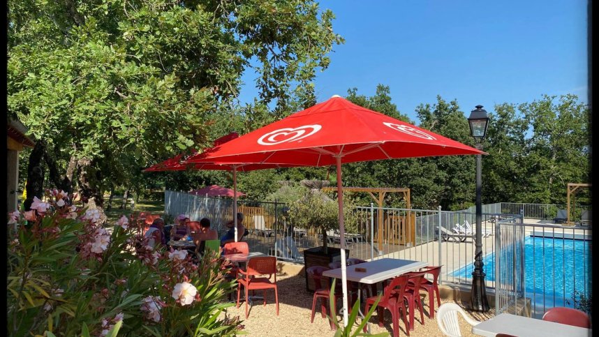 Camping L'Ombrage is a terraced site in the middle of the natural environment of the Ardèche on a hilly terrain. It is a perfect starting point for exploring the surrounding area. You will be staying here near the town of Ruoms, and from the site, you can see the rock of Sampzon in the distance. The site has 80 pitches of which 31 are for touring units and have a 16/10-amp hook-up point, and there are 32 mobile homes or safari tents available for hire. The pitches are very generous, and the low trees provide sufficient shade and give you a real Provençal holiday feeling. The pitches near the bar are perhaps best avoided as you may have to cope with loud music. The site is geared towards lovers of nature. Therefore, the facilities are not on a large scale and are limited.