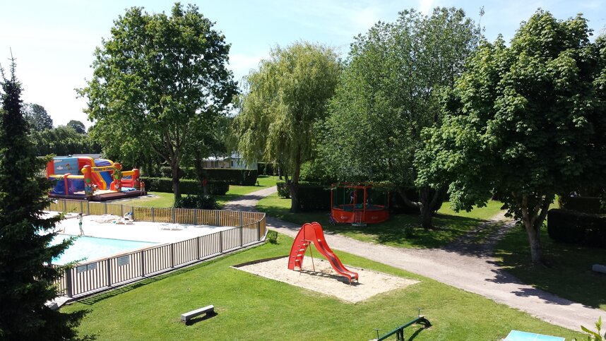 Camping l’Orée de Deauville is situated close to the village of Vauville in the heart of the Calvados stud farms, near the famous resort of Deauville. There are 150 large, level, grass pitches. The 100 for touring (10A electricity) are separated by neat hedging and a variety of mature trees give good shade in places. The enthusiastic new owners have brought order to an over-run site; grass and hedges are well maintained and there is an on-going programme of improvements. The aim is to continue to provide a relaxed, family friendly environment from which to explore the many attractions of this interesting area.