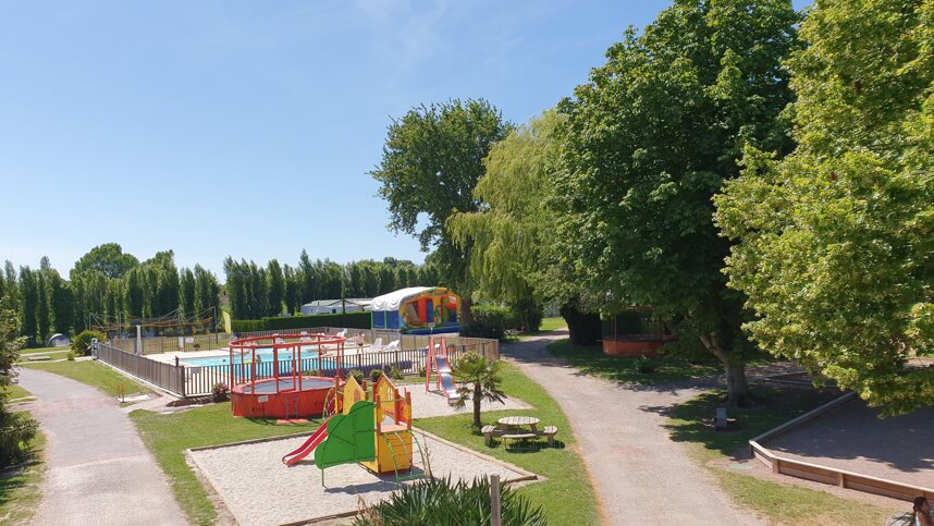 The sanitary block has pushbutton showers and some washbasins in cubicles. Basic Accessible facilities (shower/washbasin and separate WC). Washing machines and dryer. Bread to order. Bar, snack bar and takeaway (1/7-1/9). Small heated pool, paddling pool and sunbathing area (20/6-1/9; no Bermuda shorts). Play areas. Boules. WiFi by reception (free). Bicycle, go-kart and barbecue hire.