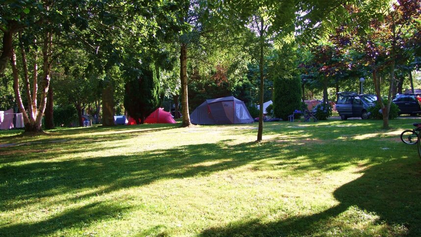 Los Manzanos has a steep access drive down to the site, which is divided by a stream into two sections linked by a bridge. Pitches for larger units are marked and numbered, 85 with electricity (12A) and, in one section, there is a fairly large, unmarked field for tents.