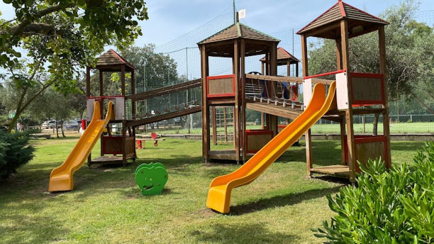 Two toilet units include facilities for babies and accessible facilities, but are some way from the lower pitches. Washing machines and dryers. Motorhome services. Small supermarket. Restaurant and snack bar. Play areas. Domestic animal area with donkeys. Windsurfing, diving and sailing. Aerobics. Riding. Tennis. Minigolf. Canoeing. Bicycle hire. Miniclub. Multisports area. Entertainment (mostly in Italian). WiFi (charged). Excursions. Torches essential.