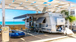 There are 45 pitches for touring, some close to the soft, sandy beach, on marked hard standings and with easy access and man-made wooden canopies offering some shade. All have 6A electricity, and there are four accommodation units for hire. A relaxing spot beside a lovely beach lapped by turquoise waters.