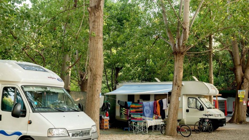 The toilet block has showers, washbasins and wc’s. Chemical toilet point. Motorhome service point. Dish washing area. Snack bar, Pizzeria. Restaurant. Bread to order. Chemical toilet point. Laundry with washing machine. Mini market. Restaurant. Pizzeria, with wood-fired oven. Take way. Bar. Disco. Table tennis, Games room. Children’s playground. Games area. Volleyball court. Five-a-side football pitch. Outdoor swimming pool. Toddler pool. Sea swimming. Beach. Mooring for boats. Jetty. Entertainment programme. Wi-Fi free, Dogs allowed. BBQ’s allowed but not charcoal. Communal BBQ area. Public transport nearby.
