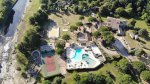 In the low season, bridge drives and boules tournaments are organised. In the high season, there is some family entertainment and a musical evening once a week. Nearby, one can walk in the footsteps of Robert Louis Stevenson (Travels with a Donkey), ride on a steam train, explore the deep underground caverns or visit a giant bamboo forest. Entrance is via a narrow unfenced bridge, so not ideal for large outfits. Nine gîtes for rent in a beautiful old farmhouse.