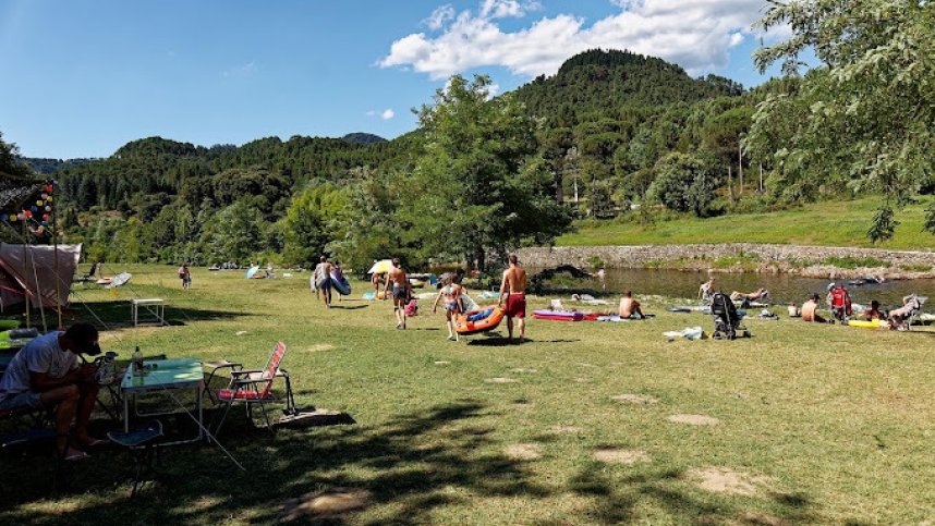 Site is 3 km. northwest of St Jean-du-Gard towards St André-de-Valborgne on D907, site signed, fork left, descend across a narrow unfenced bridge to site. Site entrance not accessible from north.