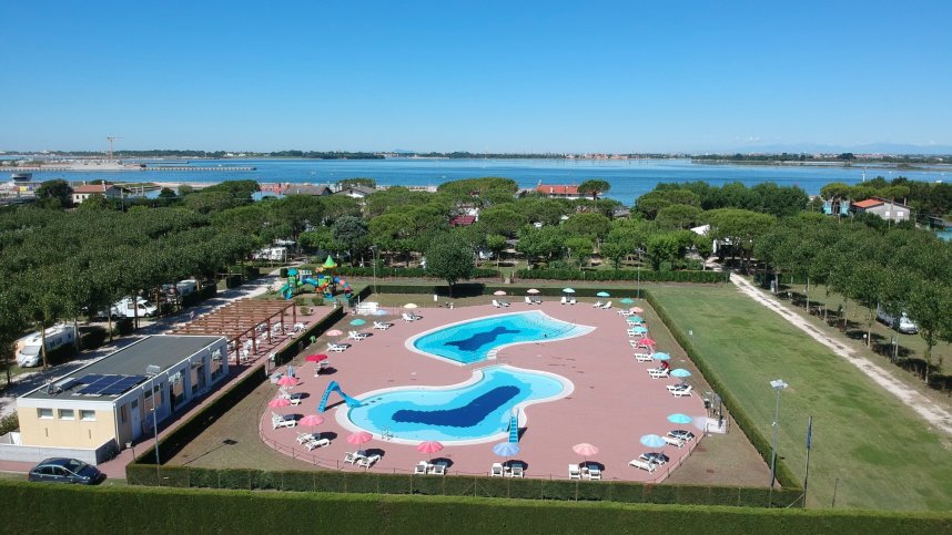 Two toilet blocks (one heated in low season) with accessible facilities. Washing machines and dryers. Motorhome services. Excellent supermarket/shop. Bar, restaurant and pizzas from the oven in the restaurant. Outdoor swimming pool, Takeaway. Library. Play area. Bicycle hire. Dogs are only accepted on 15 specific pitches. Free shuttle bus to Punta Sabbioni square (departure point for trips to Venice and the islands) and to the nearest beach (free sun umbrellas). Internet point. WiFi (charged). Barbecues on pitches not permitted.