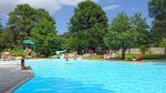 The 2 toilet blocks have showers, washbasins and wc’s. Accessible facilities. Baby room. Laundry. Dish washing area. Motorhome service point. Bar. Restaurant. Snack bar. Takeaway. Bread depot. Heated outdoor swimming pool and water slide. Solarium. Table tennis. Tennis court. Children’s play area. Shop nearby. Entertainment, Themed evenings, Dogs allowed. Wi-Fi charged. Defibrillator. Public transport on main road.
