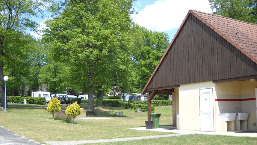 This is a particularly well organised site in a peaceful location, just 16 km. from the A71 autoroute. The site has a slight slope but most of the 69 grass touring pitches are fairly level, all with electricity hook-ups (10A). Some pitches are individual, others in bays of four, and some for tents amongst trees. There is good shade in most areas. To the rear is a large open field which slopes down to the small river. Each evening the manager visits every pitch to take bread orders; these are available from reception at 08.00 the following morning. Four mobile homes are to rent.