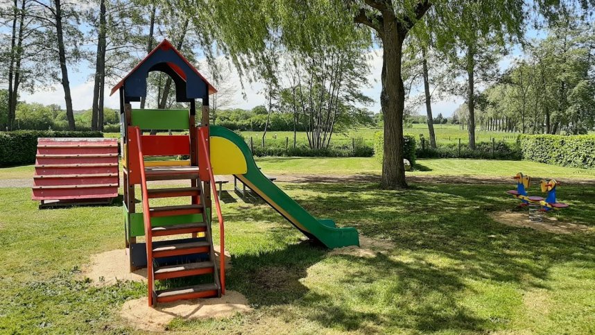 Facilities on-site include an outdoor swimming pool where you can cool off on a hot day, a tennis court where you can enjoy a game with friends or family, and a mini golf course. Since the campsite is located right on the banks of the river, it is an ideal spot for fishing; guests can fish for trout, carp, and pike. The campsite also has a small snack bar offering quick bites to eat and refreshing drinks.