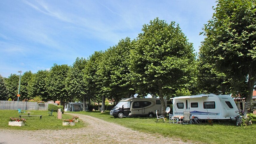 This useful municipal site in the outskirts of the town, has 96 pitches of which about 46 are available for touring units. On level grass with some neat hedging and a reasonable amount of shade from mature trees, most have electricity (5/10A) and waste water drainage. The site has its own open-air swimming pool (fenced but unsupervised) with paved surround, which is reserved for campers. Barbecues are allowed on pitches or on the communal area. There is also the addition of four wooden chalets, a boules pitch and a volleyball area.