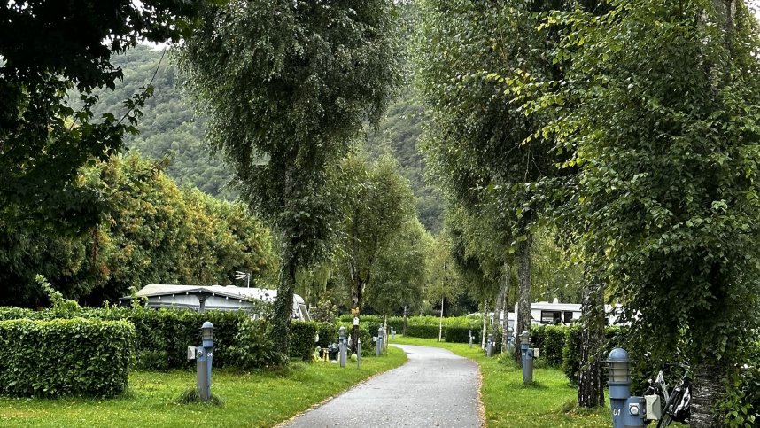 The site is clean and well-maintained, and access is good. Sixty-four pitches are generous in size, divided by hedging, and have shade from well-established trees. Facilities are as you would expect on a Municipal, a little dated but clean and functional; check-in was efficient and quick although very little English was spoken; reception houses a small shop, and the site is a short walk into the village; there is also a walk which runs along the river bank. The site is fenced, and the gate is locked at night, making the site very secure. For approximately £16.00 per night, this site represents excellent value.