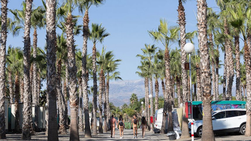 With direct access to a one-kilometre grey sand and shingle naturist beach, this established, all-year naturist site, set amongst agricultural land with a mountain backdrop, is proving a firm favourite with many British campers seeking winter sun. The facilities are of a very high standard. The entire two-hectare site is flat with a fine shingle surface. A large number of mature trees provide much-needed shade in the summer months.