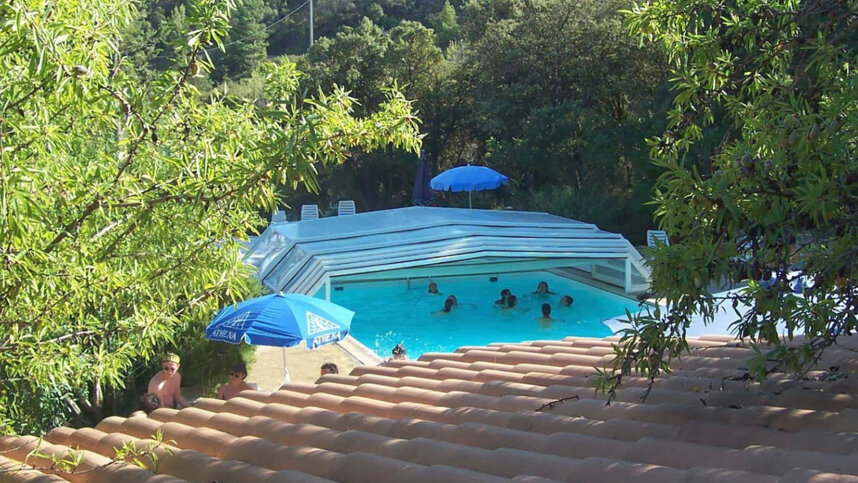 A quiet, rural naturist site hidden in the hills of the Minervois, only 3 km. from the medieval town of Minerve. There are marvellous views to the Pyrenees, the Corbières and the coast at Narbonne. The site now has just 20 very large pitches (electricity 6/10A) and six caravan holiday homes. Mainly on level grass, they are separated by mature hedges which give considerable privacy.