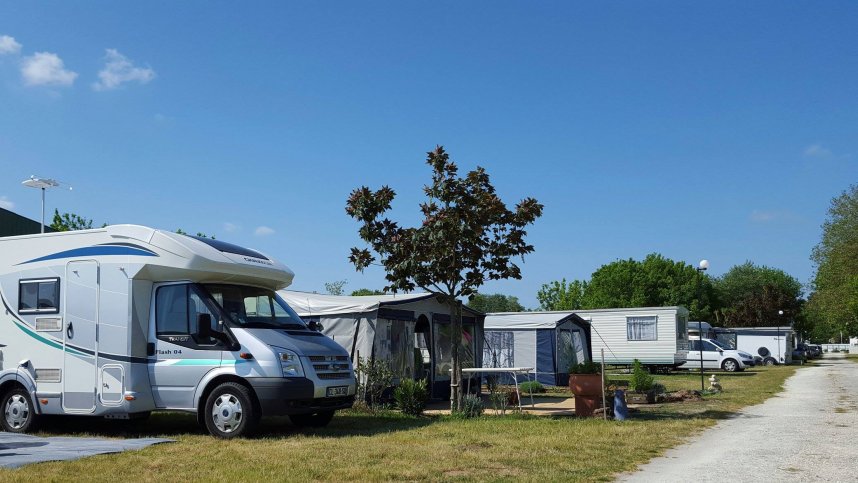 From La Palmyre take D141E1 to Les Mathes. At roundabout take D141E4 towards Marennes and site is on the right hand side 300 m. after the roundabout.