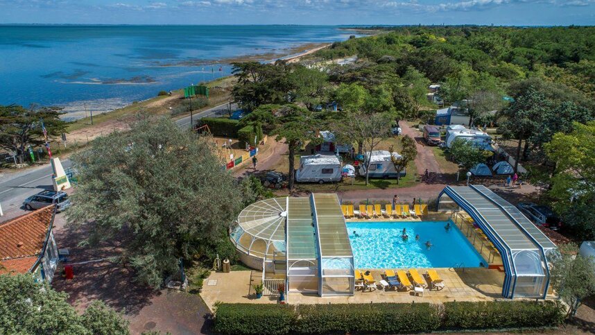 Camping Ostrea is a family and friendly site by the sea on the east coast, the most typical of the island of Oléron. Ile d'Oléron the bright island, famous for its sunshine. Known for its Fort Boyard and its colourful oyster huts typical of the region, you can visit the many tourist sites during your holidays. The site has 110 pitches of which 60 are for touring units with 6amp hook-up point, and a further 26 are occupied on a seasonal basis. There are also 28 mobile homes available to hire. Located facing the sea, its location is ideal for getting some fresh air. Volleyball court and bowling alley on the beach. A free shuttle bus (in high season) stops in front of the site to take you to the beaches and sights without having to use your car. Many bike paths serve the entire island. For those who want to relax after a busy day there is a whirlpool. The site has an indoor pool with sliding roof and a toddlers' pool. You can swim nearby in the sea or go windsurfing and water-skiing.