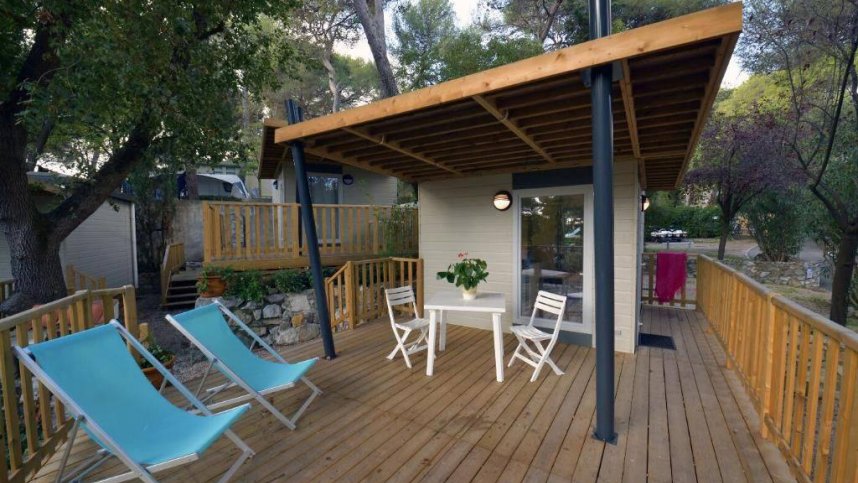 There is no on-site restaurant, bar or shop but local amenities are within walking distance. The site is popular with a wide range of nationalities and had an international feel at the time of our visit as the site’s mobile homes are popular with backpackers. Public transport is good in the area, with buses serving coastal towns and the train station 400 m. away. Several large water theme parks and good sporting facilities are nearby. The local town of Villeneuve-Loubet has a good selection of traditional French restaurants and shops.