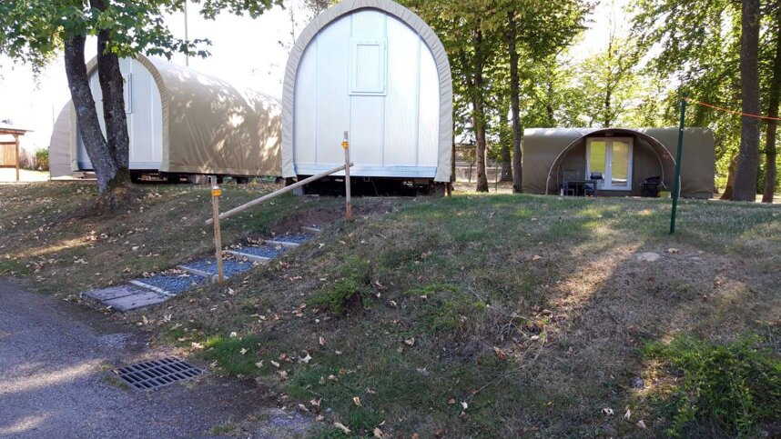 Bordering the grounds of a ruined medieval fortress, Camping Parc du Chateau is just over a kilometre from Epinal, the capital city of the Vosges department in Eastern France. The small site is welcoming with tidy flower beds, 36 grass pitches for touring units as well as attractive glamping units for rent, all separated by shrubs and mature trees. The site has its own pool (not heated) with sunbathing area and is accessible for those with reduced mobility. A short walk of 500 metres out of the campsite gates takes you to Parc de Château which has a small animal park, a children's play area and views over the city.