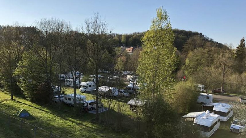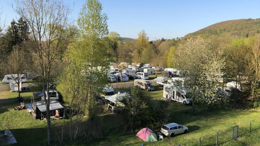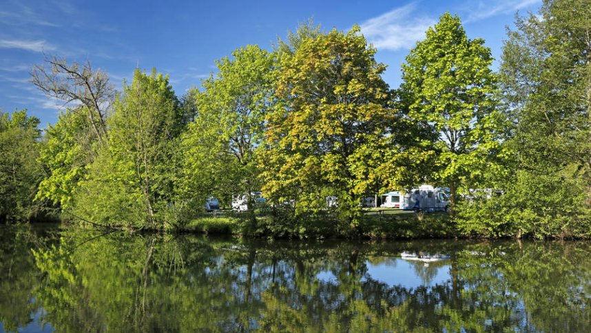 Bad Kissingen is a very attractive town and was a favourite of Bavarian Kings, Austrian Emperors and Bismark, who lived here for a while. This quiet site by the lakeside on the edge of town has direct access to the centre through the private entrance to the adjacent park. A grassy, partially shaded site with a tarmac service road, there are only 99 pitches (80 with 6A electricity, 40 with water and waste water connections), all well spaced out. Of these 20 are used by permanent units, so reservation is advisable.