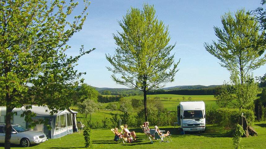 Camping Park Hammelbach is a terraced site which lies right at the heart of the Odenwald in a very quiet location at the edge of Hammelbach. The site is situated in an area ideal for hiking and is surrounded by forests and valleys that allow a marvellous distant view. Well-marked footpaths take you right from the site through a hiking paradise where new views await you. Or you may explore the area on diverse paths by cycle. Mountain bikers will find routes of all degrees of difficulty. All the 135 grass/hardstanding pitches have electric hook-up 16amp, water and wastewater drain. Thirty-five are for touring units and some are reserved for those with mobility issues. Nearby are bowling alleys, sports shooting, tennis courts, restaurants shops and an events calendar. Finally, after an eventful day, relax in the spacious wellness oasis with sauna, steam bath, solarium and massage.
