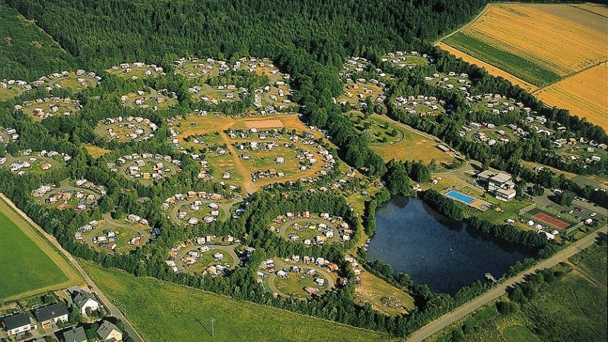 This quiet countryside site, spread over 20 hectares, is situated close to the French and Luxembourg borders. With 980 pitches (600 for touring units), the site is constructed with 29 circular grassed areas, each surrounded by trees and containing no more than 25 pitches. This creates the impression that you are staying on a small site, although you do have the facilities provided by a larger one. A spacious central meadow opposite a lake is used for caravans and tents and is separated from a playing field by a tree-lined stream. This is a quiet and relatively unknown corner of Germany.