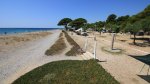 This peaceful and delightful, family run site has a lot going for it: its situation beside the sea with a wide beach of sand and pebbles, its amazing mountain backdrop, the views across the bay to the town and the friendly, relaxed atmosphere created by its owner of 40 years, Elisa Roller, her family and her staff. There are 152 mostly level pitches, some beside the beach, others on wide, informal terracing. Electricity (10A) is available throughout (long leads may be needed in places). Pine and olive trees are an attractive feature and provide some shade. The restaurant with its homely touches has a good local menu and a reputation extending well outside the site.
