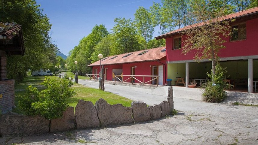 Local stone has been used for the L-shaped building at the main entrance which houses reception and a very good bar/restaurant. The site can organise caving activities, and has information about the Cares gorge along with the many energetic ways of exploring the area, including by canoe and quad-bike! The Bulnes funicular railway is well worth a visit.