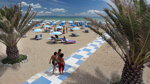 This well equipped site with 314 pitches (all with 6A electricity) has direct access to a 70 metre wide, 1 km. long private sandy beach that leads down to the gently shelving waters of the Adriatic. On the beach, from where the Croatian coast is visible some 35 km. away, each of the level, mostly shaded pitches has its own numbered sun umbrella. This is a good family site with safe sea swimming (with lifeguards) and an attractive large pool complex, as well as an entertainment programme in summer. At three beach entry points there are rooftop snack bars with toilets at ground level and walkways leading down to the water’s edge.