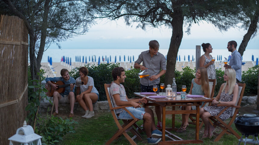 There are 14 sanitary blocks of varying standards with free hot water. Accessible facilities for campers in eight units. Washing machines and dryers. Motorhome services. Large supermarket. Shop, two restaurants, bar and takeaway (all open all season). Beach snack bars. Swimming pool complex (all season) with hot whirlpool and slides. Wellness Area with Kneipp Parcour, Whirpool, Baby Pool, Sauna, Turkish Bath. Gym. Tennis. Direct access to the beach. Play areas. Entertainment programme and activities for children in summer. Mobile homes to rent. WiFi throughout (charged).
