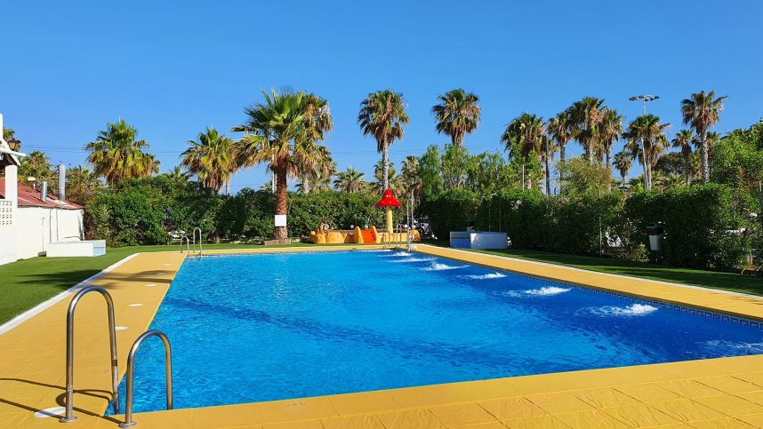 Camping Playa Poniente is in Motril, a coastal town in Granada, Spain. It is situated directly on the beach, with views of the Mediterranean Sea. The campsite is about 70 kilometres from Granada and 100 kilometres from Malaga. The campsite has 203 touring pitches and 19 bungalows to rent. The pitches are spacious and well-maintained, with eclectic hook-up points available, and most have shade. The bungalows are fully equipped and have air conditioning, heating, and a private bathroom.
