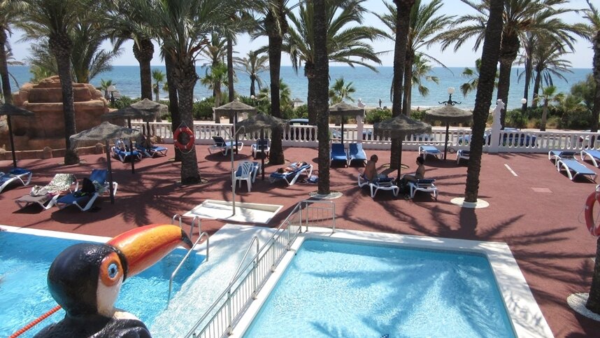 Playa Tropicana is a unique site which will immediately strike visitors as being very different. It has been given a tropical theme with scores of Romanesque white statues around the site, including in the sanitary blocks. The site has 380 marked pitches separated by lines of flowering bushes under mature trees. The pitches vary in size (50-90 sq.m), most are shaded and there are electricity connections throughout (10A, some need long leads). There are 50 pitches with shared water and drainage on their boundaries. The site has a delightful position away from the main hub of tourism, alongside a good sandy beach which shelves gently into the clean waters.