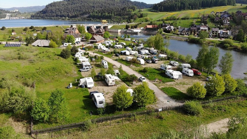 The small village of Niedzica is south of the Pieniny mountain range in the Dunajec valley and about 40 km. northeast of Zakopane. This excellent little campsite is right alongside the Dunajec dam and the river, at the eastern end of the Czorsztynskie lake. With 35 level touring pitches, all with electricity, it is a good short or long stay site. Adjacent is the Dwor restaurant which is open from 10.00 to 22.00 all year. The raft ride on the river that flows through the limestone mountain gorges is one of the best known tourist attractions in Poland.