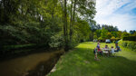 The main toilet block has underfloor heating, preset showers and washbasins in cabins. Baby room, A further smaller block is located nearer the tent field. Laundry and dishwashing area. Shop (limited opening hours). Bar. Games area in bar. Direct river access. Fishing. Pétanque. Volleyball. WiFi (charged).