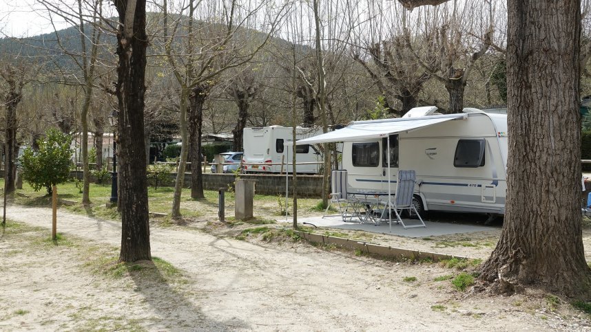 The gently terraced 3.5ha Camping Prados Abiertos is set amongst trees on the southern edge of the Sierra de Gredos (regional park), nestling in the Tietar Valley two miles south of Mombeltran (castle)—a delightful scenic area of Spain. Established in 1983, the 146 pitch site remains under the same family, and today, a warm welcome is offered by Antonio, who speaks some English. A high percentage of pitches are permanently occupied. However, 21 are reserved for visiting tourists with caravans or motorhomes and 19 for tents. All have a 6-amp electric supply.