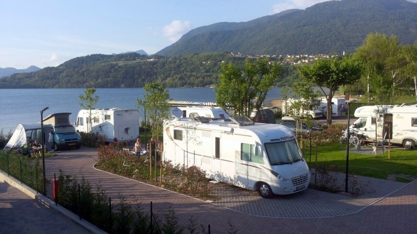Camping Punta Lago is in a beautiful setting on Lago di Caldonazzo. This attractive family run campsite, with easy lake access across a small road, has 140 level, shaded pitches on grass. Of a good size, all have 3/6A electricity and 50 are serviced with water and drainage. The campsite first opened 50 years ago and brothers Gino and Mauro continue the friendly family tradition of ensuring you enjoy your holiday. As a former President of the Consortia Trentino Outdoors, Gino knows all about the range of activities available locally including fishing, lake swimming, windsurfing, sailing and canoeing.
