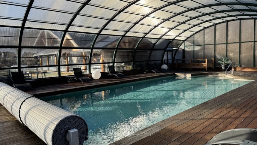 L’Eden is open to touring units in summer and winter. It is beside the Isere river and set in beautiful woodland glades, perfect for winter skiing and walking and cycling in summer. The site is set in a valley with the Alpine peaks as a backdrop. The 115 good, spacious pitches all have 16A electricity hook-ups and individual water supplies and there are 20 mobile homes, bungalows etc. for hire. The clean, modern sanitary blocks are heated in colder weather and include a large drying room. There is a lovely covered heated pool, a bar and a welcoming communal area with bar and TV.